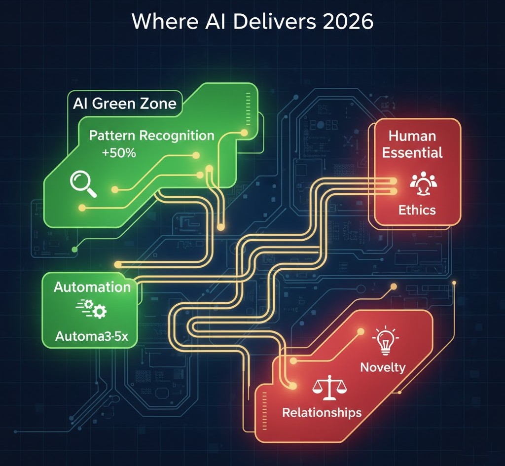 AI’s capabilities are genuinely impressive in specific domains—pattern recognition, information processing, content generation, and automation of structured tasks. The businesses that have integrated AI thoughtfully are seeing substantial returns.
